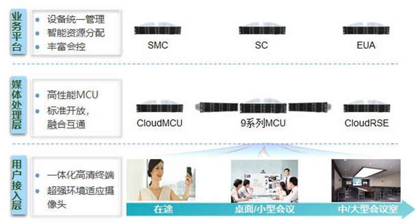 视讯解决方案是面向政府、交通、安全、金融、大企业、中小企业等领域,提供高临场感的远程会议、桌面及移动视频接入、企业流媒体应用等场景下的视频会议整体解决方案。