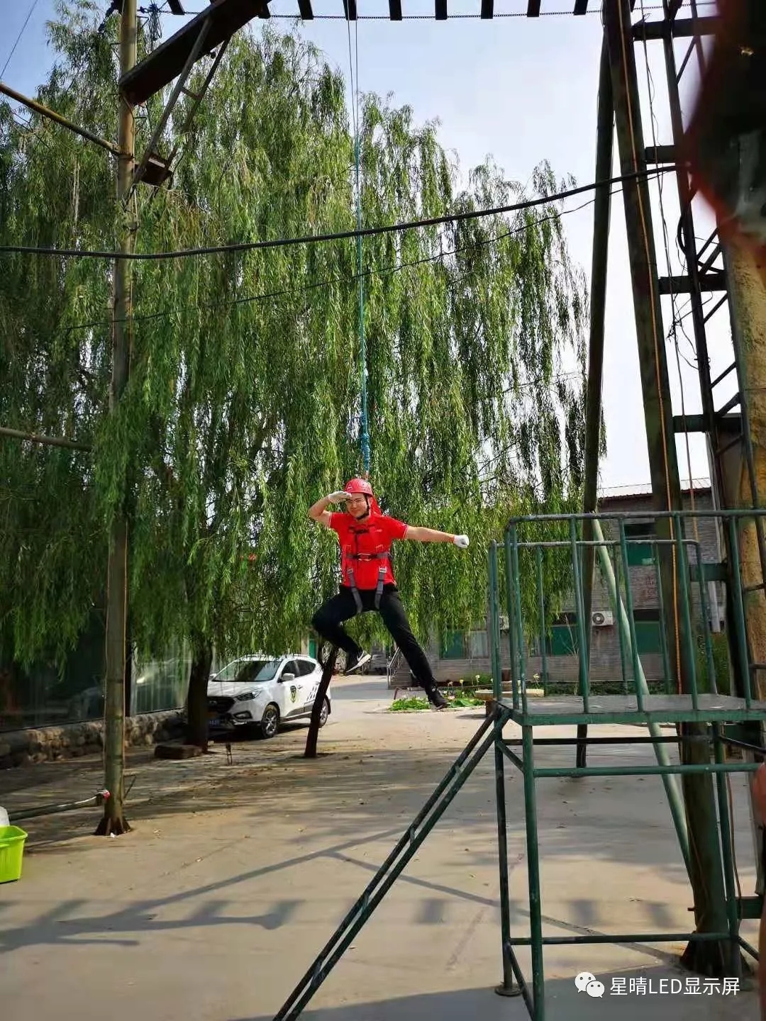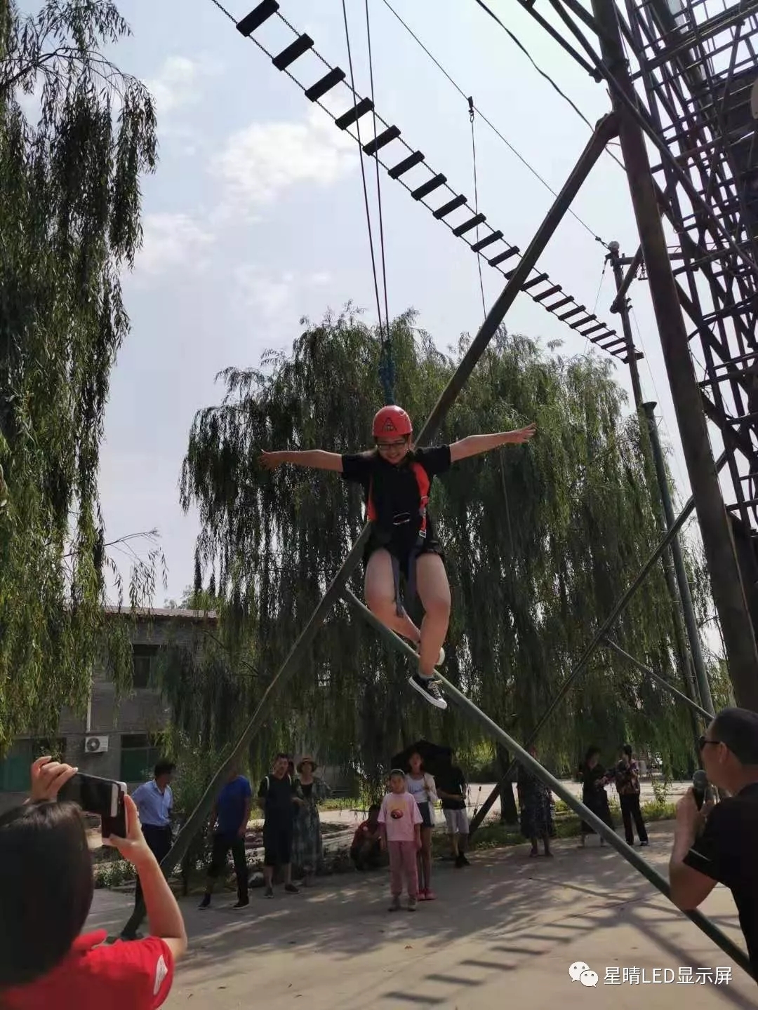 ▲第二天一早,迎来的是突破自我的高空断桥游戏