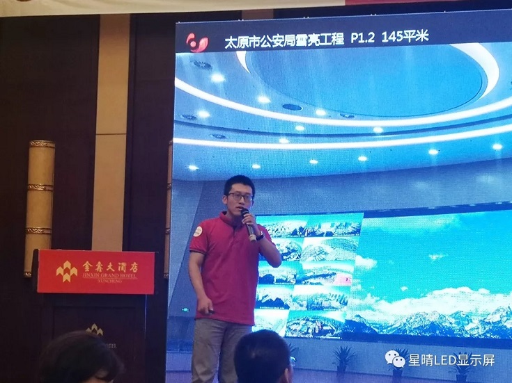 运城区域经理杨栋先生与来宾分享利亚德山西部分案例,同时用一个“协”字诠释了山西星晴团队=服务团队的定